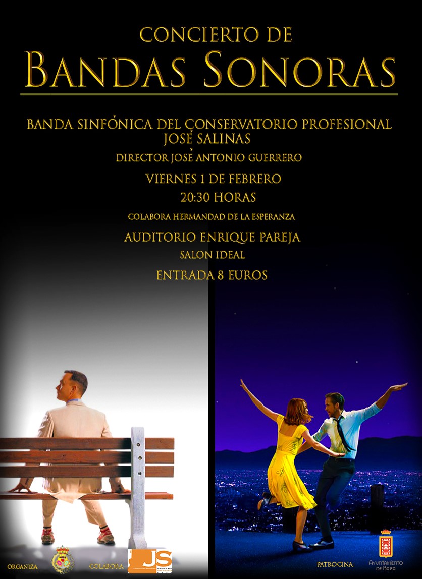 Los asistentes a este concierto podrán disfrutar de las bandas sonoras de las películas más destacadas de los últimos tiempos y que más nos han podido marcar en nuestra vida, como pueden ser: “El Rey León”, “Forrest Gump”, “La, La, Land” o “Frozen”, entre otras, conformando un programa con una variedad muy bien escogida para que, tanto mayores como pequeños, puedan disfrutar de una tarde noche de maravillosa música en Baza.