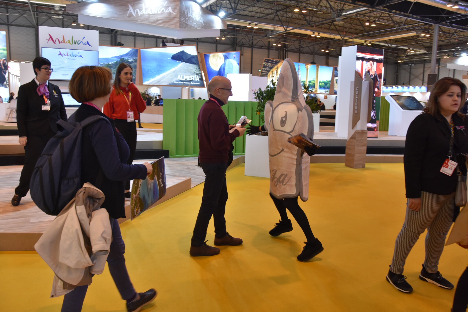 A destacar del día de ayer la presencia en el pabellón granadino de la delegación bastetana, entre la que estuvo la Dama de Baza, representada por Vanesa Mesas, a quien se ve en una de las imágenes entregando a la expresidenta de la Junta de Andalucía material promocional de nuestra ciudad y a la que se vio también en parajes como el Metro madrileño, que nunca hubiera pensado en su pasado, como se puede apreciar en la segunda de las imágenes.