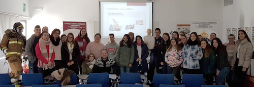 El Parque de Bomberos de Baza realizó dos actividades formativas y dos simulacros en tres días. El Servicio contra incendios, Salvamento y Protección Civil del Ayuntamiento de Baza demuestra su implicación colaborando en charlas formativas y en la planificación, colaboración y ejecución de simulacros. En las jornadas del pasado jueves y viernes, alumnos y alumnas de distintos ciclos formativos del I.E.S. Jiménez Montoya compartieron parte de su formación matinal con personal de este Servicio, repasando conocimientos en primeros auxilios, RCP y uso del desfibrilador, así como realizando un acercamiento a las instalaciones y funcionamiento del Parque de Bomberos y el personal que lo integra.Fue el jueves también, cuando personal del Servicio se desplazó a la Residencia de La Torre para asistir a un simulacro de un incendio en una habitación que obligaba al confinamiento total de sus usuarios. Un ejercicio para la evaluación de la implantación de su Plan de Autoprotección en la que TODOS aprenden y mejoran su respuesta y actuación, que una vez más, ha sido ejemplar.