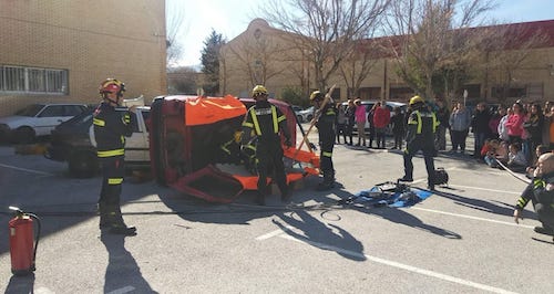 Para comenzar la semana y en colaboración con el Ciclo Formativo de Automoción del I.E.S. Jiménez Montoya, se procedía a la realización de una demostración didáctica y práctica en la intervención de un accidente de tráfico entre dos turismos. Esta exhibición ha sido especialmente útil para reforzar la prevención en este tipo de siniestros, mostrar las herramientas de excarcelación y su uso, los riesgos en la manipulación de vehículos y la actuación con víctimas politraumatizadas.
