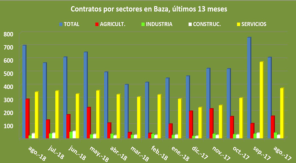 La tormenta de pedrisco del pasado 3 de septiembre, además de los 16,7 millones de euros de pérdidas en las producciones de Baza y Cúllar, ha supuesto una gran pérdida de jornales que tendrá incidencia en los próximos datos de empleo en la comarca. Por otro lado, debe tenerse en cuenta que la limitación productiva durará varios años como consecuencia de los daños en el ramaje y troncos de los cultivos leñosos.