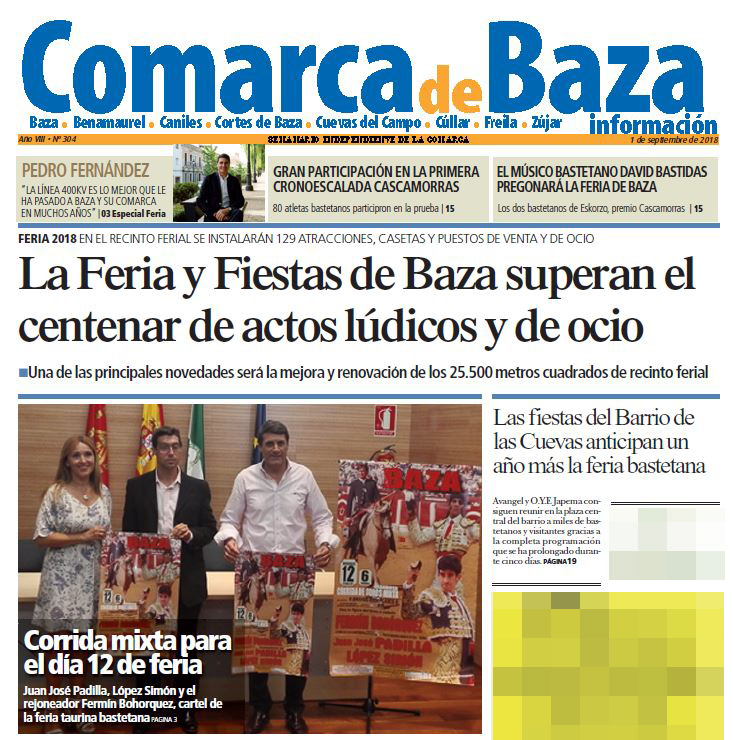 La revista El Norte saca también su edición especial dedicada a la Feria y Fiestas de Baza 2018. Una edición en la que se destacan los titulares que indicamos a continuación, junto al resto de noticias que tienen como base la celebración de la Feria bastetana y a la que se unen estos titulares destacados:
