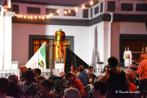El pasado 15 de agosto en la iglesia de San Miguel, se llevó a cabo la colocación de lazos a la bandera que se porta este año y que representan promesas de la gente de pueblo que comisionan al Cascamorras para esta misión. Ese día tuvo lugar la primera jura de bandera de José Heras, el encargado de encarnar al mítico personaje esta edición.