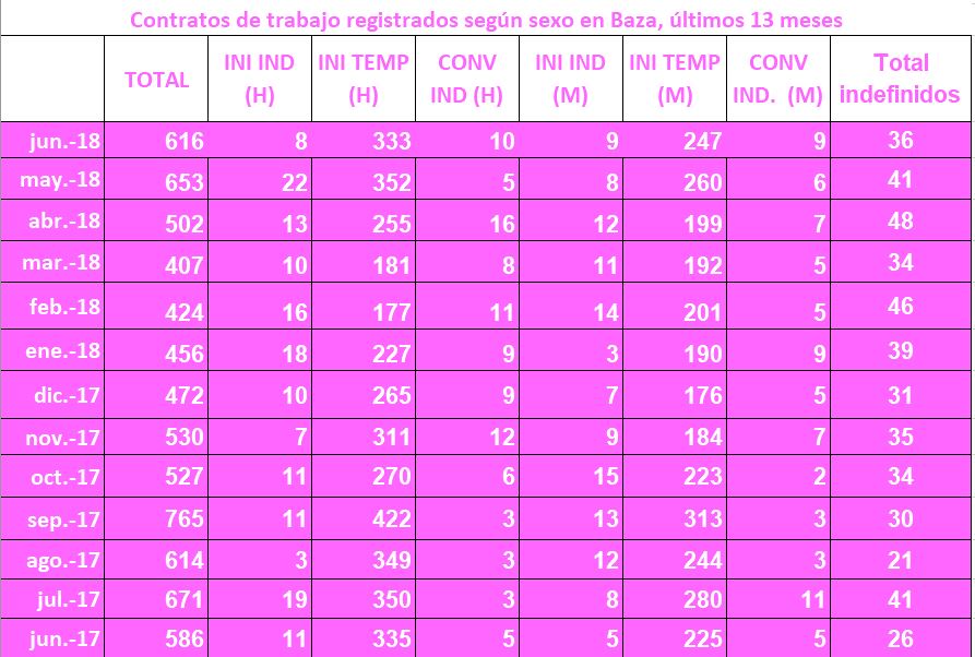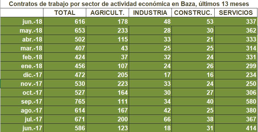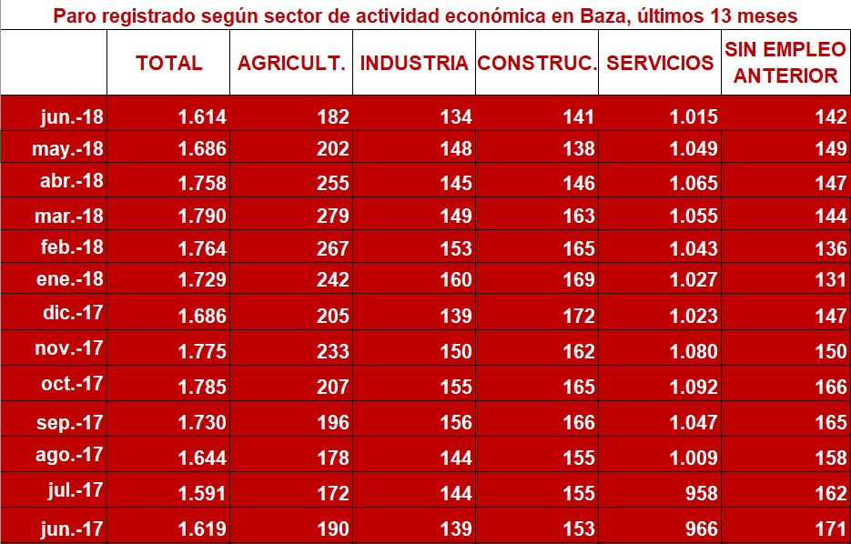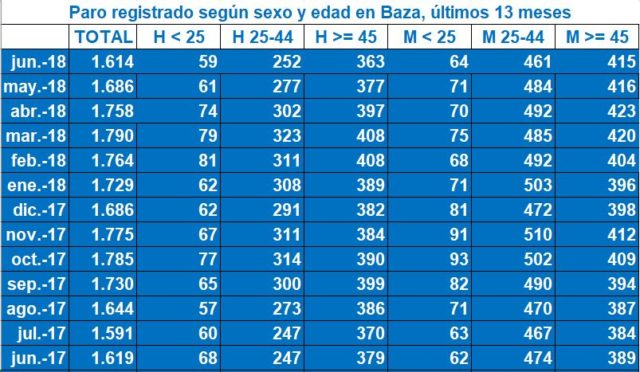 La evolución de las cifras del paro retorna a niveles de junio del 2017, los más bajos de los últimos tiempo en Baza. Unas cifras que, como se dice por Baza, “tampoco son para tirar cohetes”, pues hablamos de 1614 personas sin empleo, pero que son significativas en el sentido de que volvemos a estar a unos niveles que con la excepción de los menes de junio (1619) y julio (1591) del 2017, hacía muchos años que no se producían.