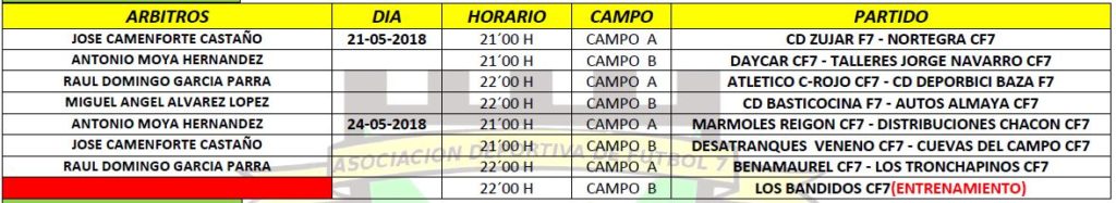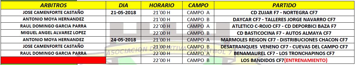 Partidos, árbitros y horarios para la jornada 29 de la VII Liga de la Asociación Deportiva de Fútbol 7: