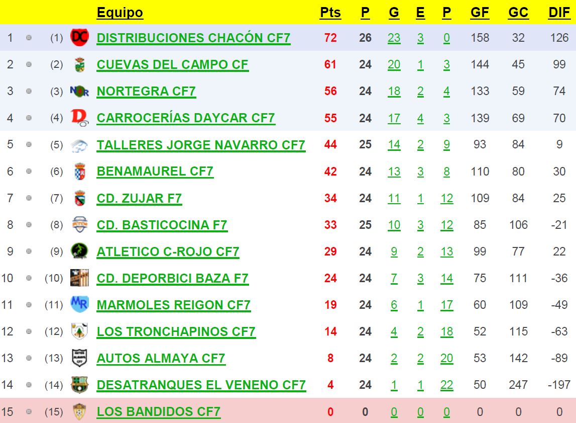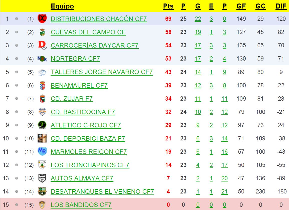 Trofeo «Construcciones Veneno» de la VII Liga de la As. Dep. de F7 de la Zona Norte tras la jornada 28: