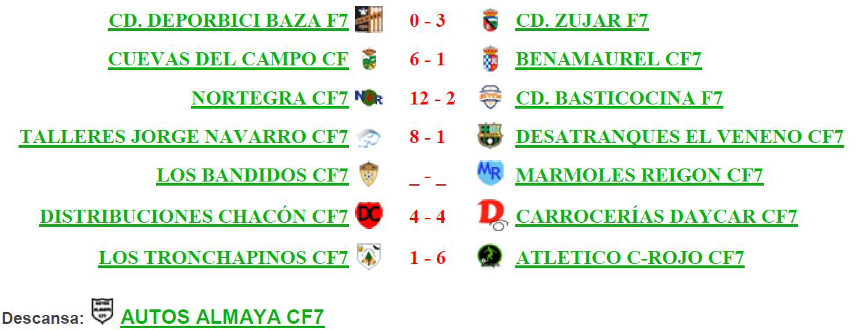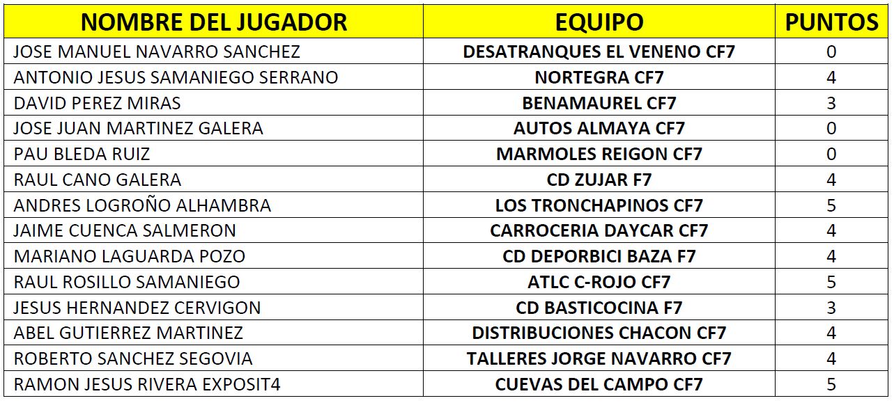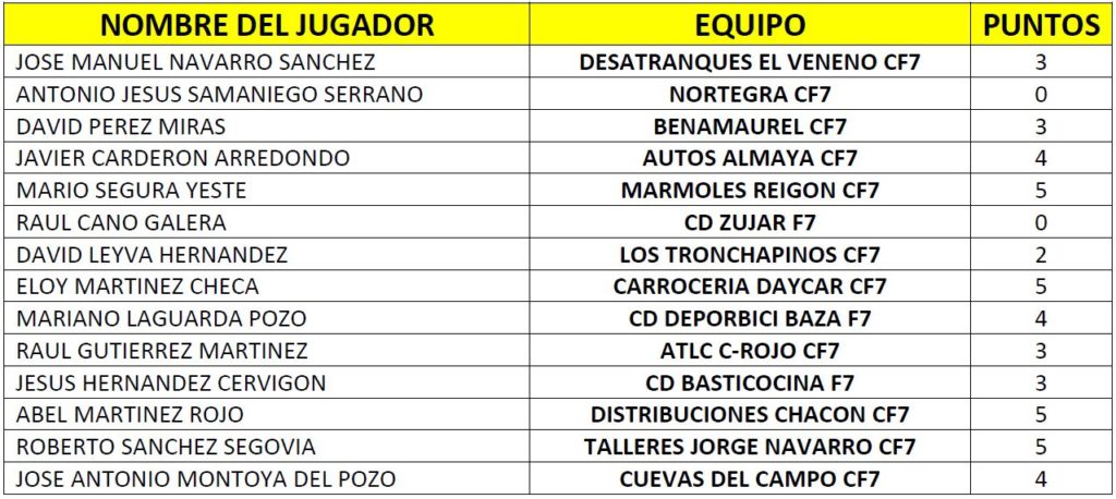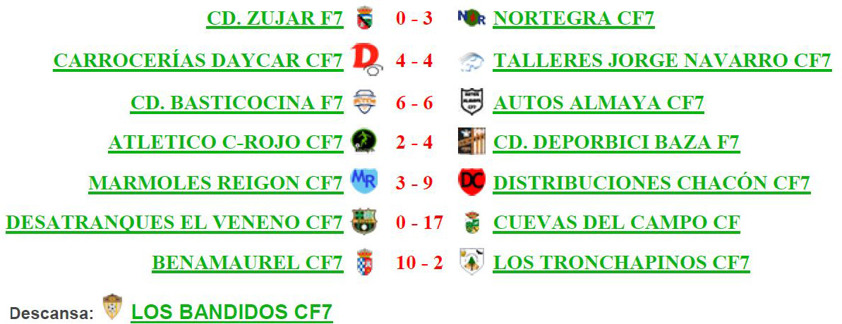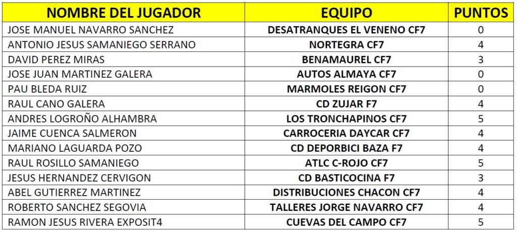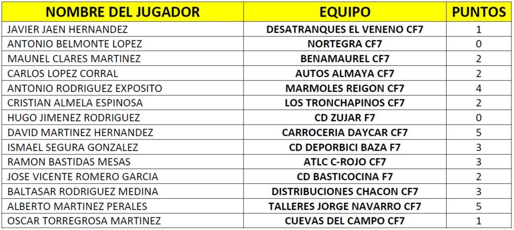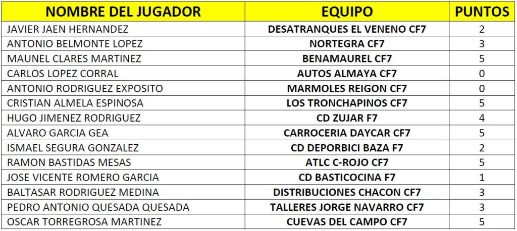 - Pérdida de balón y multa de 10€ al Autos Almaya CF7 y al Carrocerías Daycar CF7