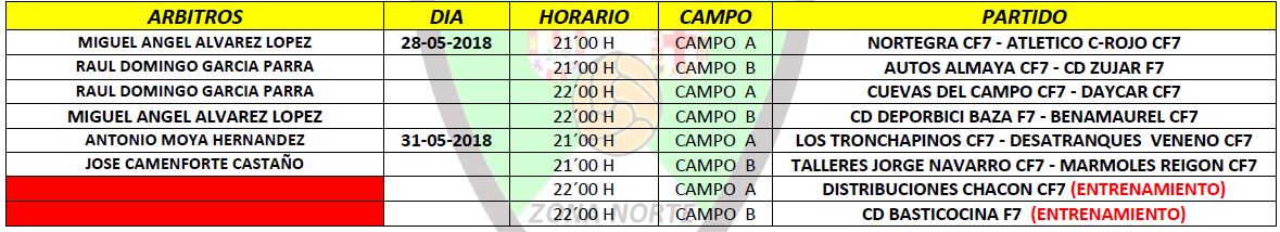 Sanciones de los encuentros de la jornada 28 de la Liga de la Asociación de Fútbol 7 de la Zona Norte. Jornada disputada los días 21 y 24 de mayo de 2018, sobre la que se han adoptado los siguientes acuerdos: