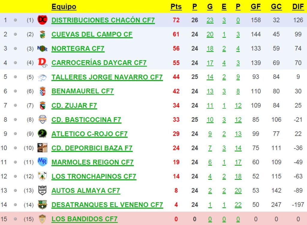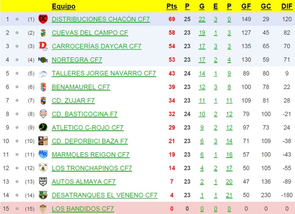 Trofeo «El Burlón» de la VII Liga de la As. Dep. de F7 de la Zona Norte tras la jornada 28: