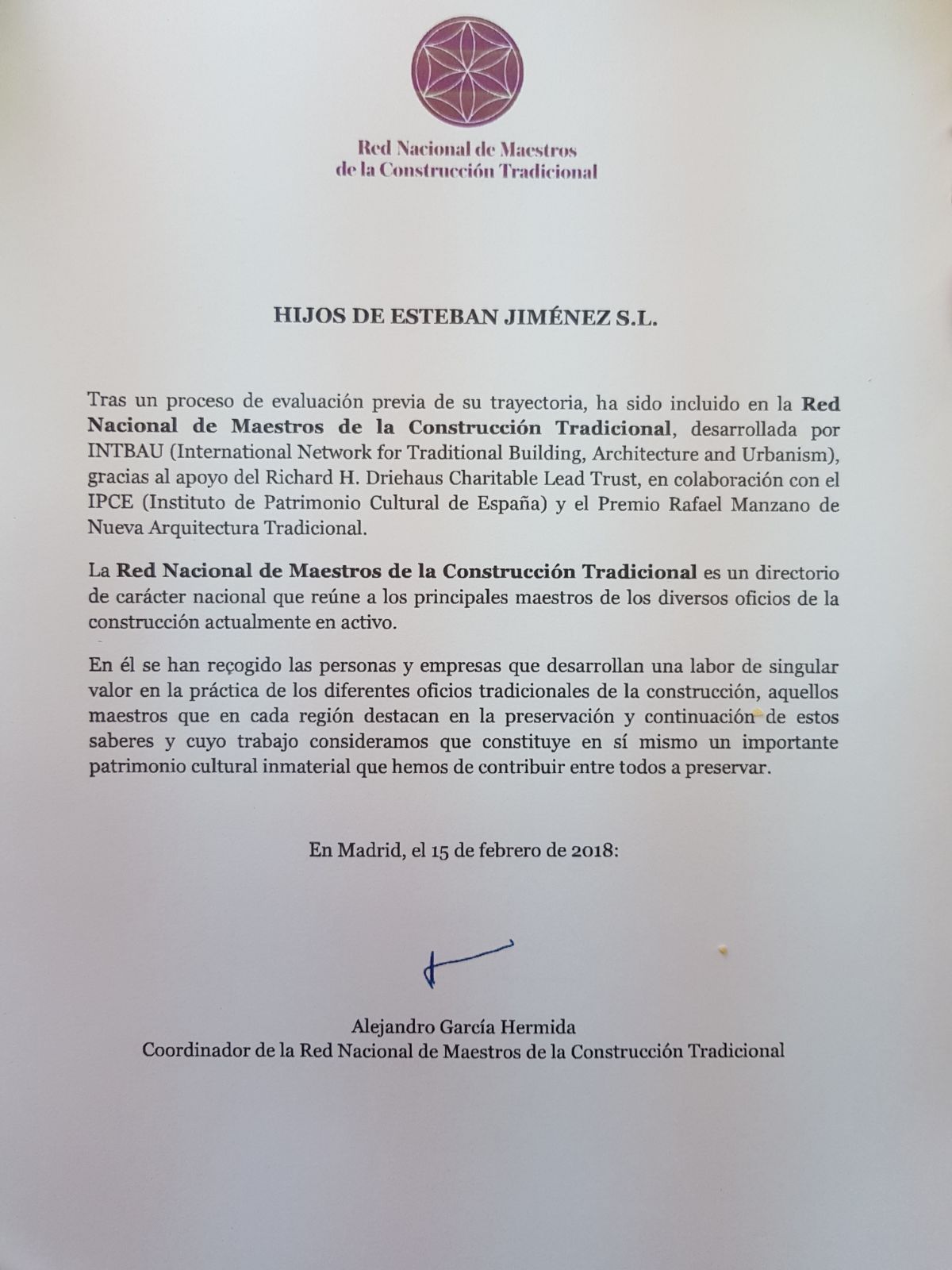 El Maestro Artesano bastetano Esteban Jiménez incluido en la Red Nacional de Maestros de la Construcción Tradicional.