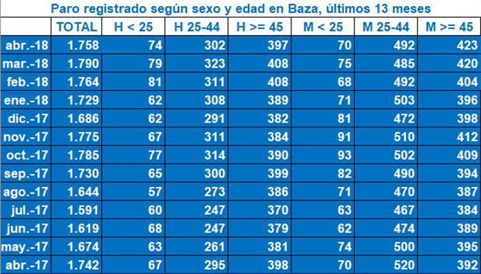 Paro por edad y sexo. Datos