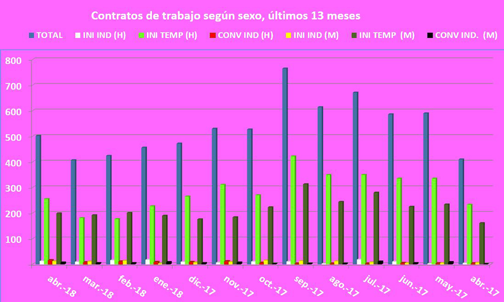 En esta ocasión hay que celebrar esos 48 contratos indefinidos que se han producido, de los que 16 son de hombres y 7 de mujeres que ya estaban trabajando que han logrado estabilidad en sus puestos de trabajo al cambiar su contrato de temporal a indefinido. A ellos se unen 13 hombres y 12 mujeres que han encontrado empleo y han firmado contratos indefinidos en sus lugares de trabajo, en un mes en el que ha sido la agricultura la que realmente ha “tirado” de las cifras hacia la mejora, mientras que la construcción no acaba de arrancar, y los servicios y la industria apenas han registrado cambios significativos en sus contrataciones.