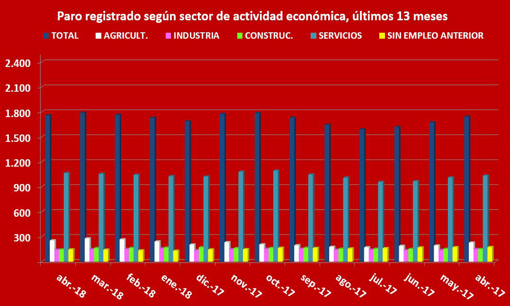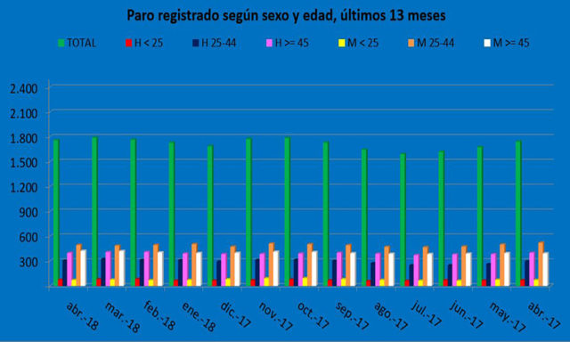 Las cifras del paro bajan en 32 personas a finales de abril, un mes en el que se han realizado 48 contratos indefinidos. Unas cifras que, aunque muy modestas, es la primera vez que, en mucho tiempo, ofrecen datos algo más alentadores de lo que estamos acostumbrados, sobre todo porque hablamos en muchas ocasiones de la precariedad del empleo que se va gestando, lo que equivale siempre a mejoras parciales y poco definitivas.