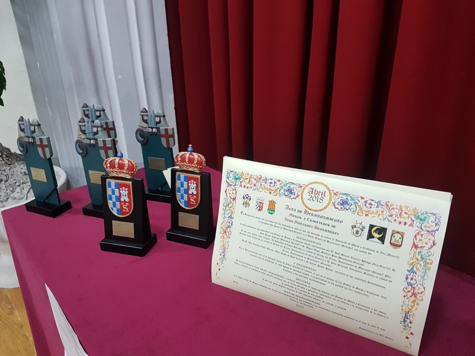 Al acto acudieron las autoridades de los tres ayuntamientos, representantes de la Asociación de Fiestas de Moros y Cristianos de Vera, Comparsa Els Pacos de Mutxamel y Unión Festera de Benamaurel, así como festeros de las diferentes localidades y todos los visitantes. Tras su finalización, acompañados por la Agrupación Musical Benzalema, todos los asistentes, se trasladaron a la Plaza Mayor, donde se realizó una invitación