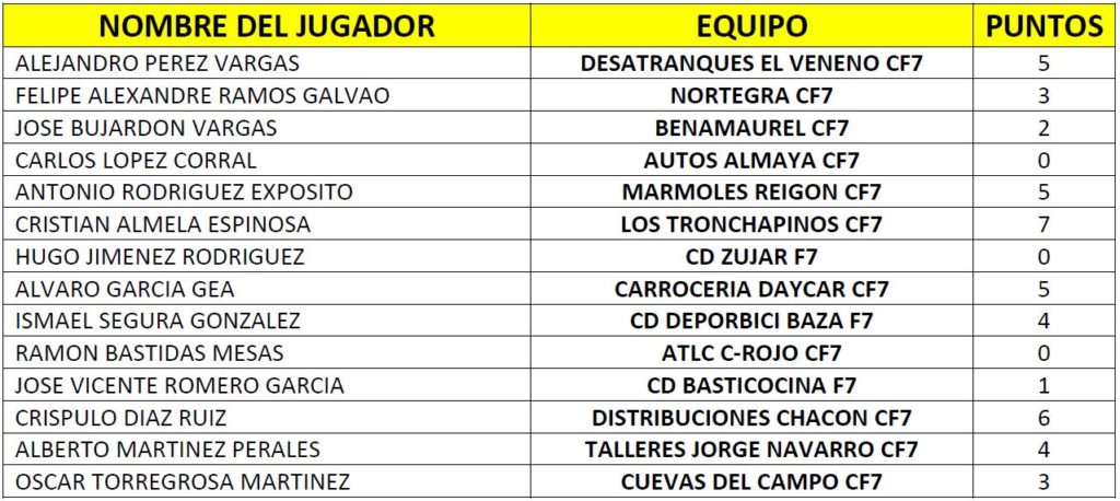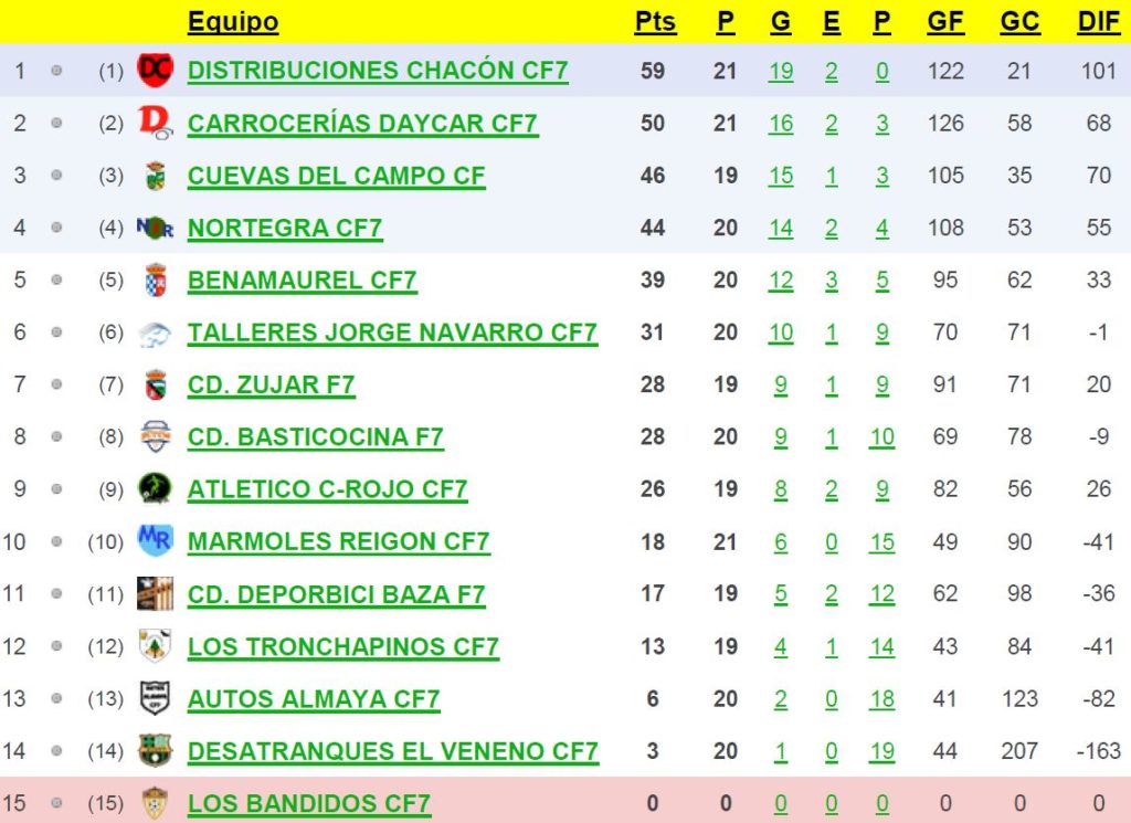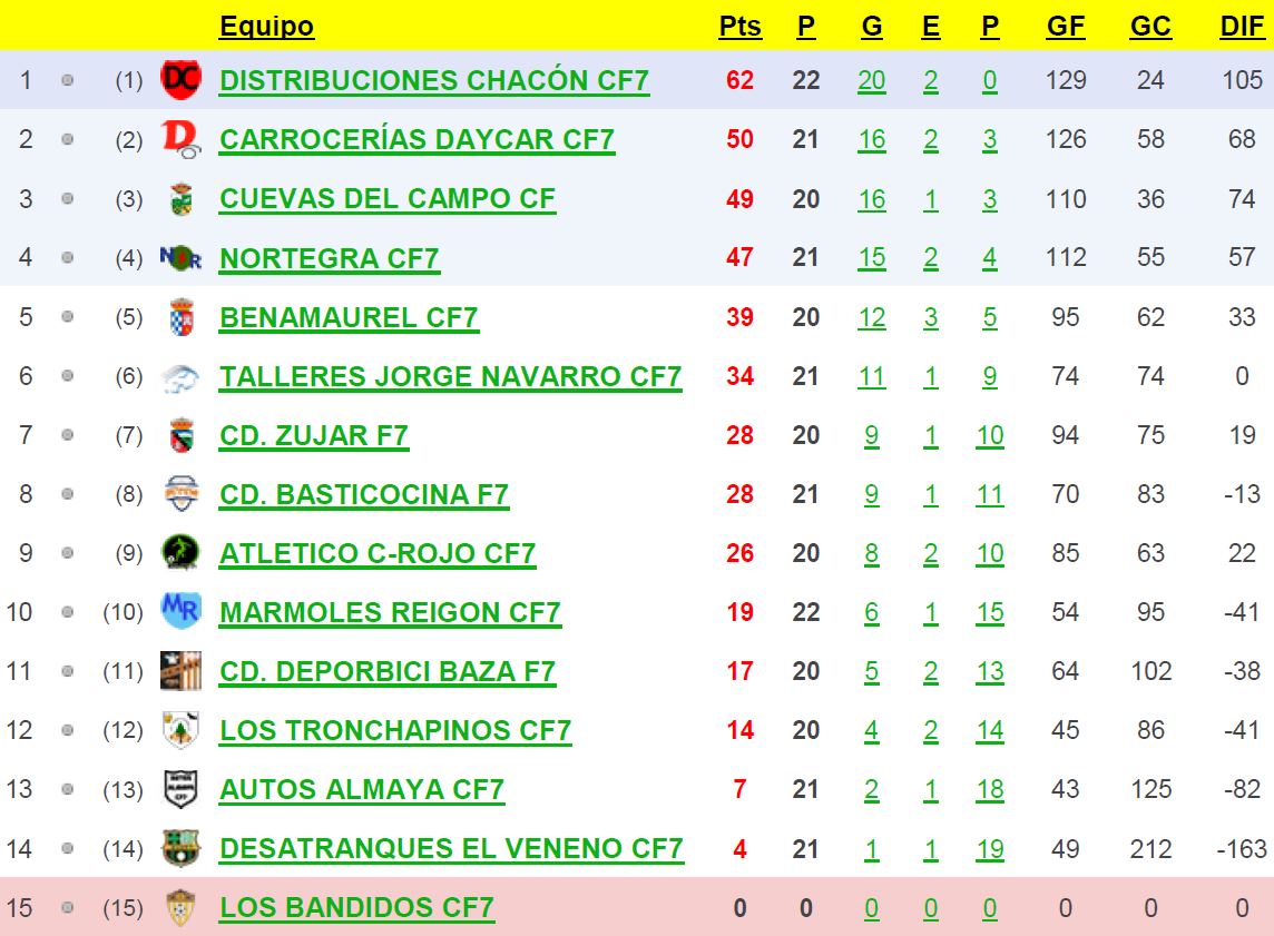 Trofeo «Construcciones Veneno» de la VII Liga de la As. Dep. de F7 de la Zona Norte tras la jornada 24: