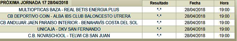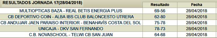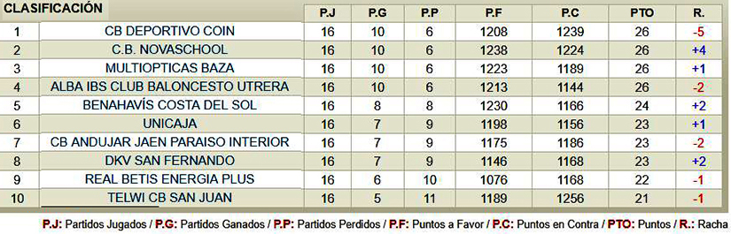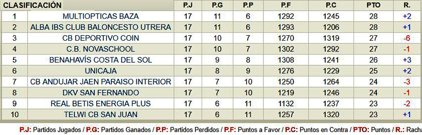 Multiópticas Baza: David (12), Alberto Pérez (8), Sergio Valdeolmillos (12), Marcos Vigo (10), Jorge Rodríguez (16), Javier del Estal (0), Alberto Moya (6), José Antonio García (0), Sergio Álvarez (0) Pablo Lupiáñez (0) Manuel Mesa (5)