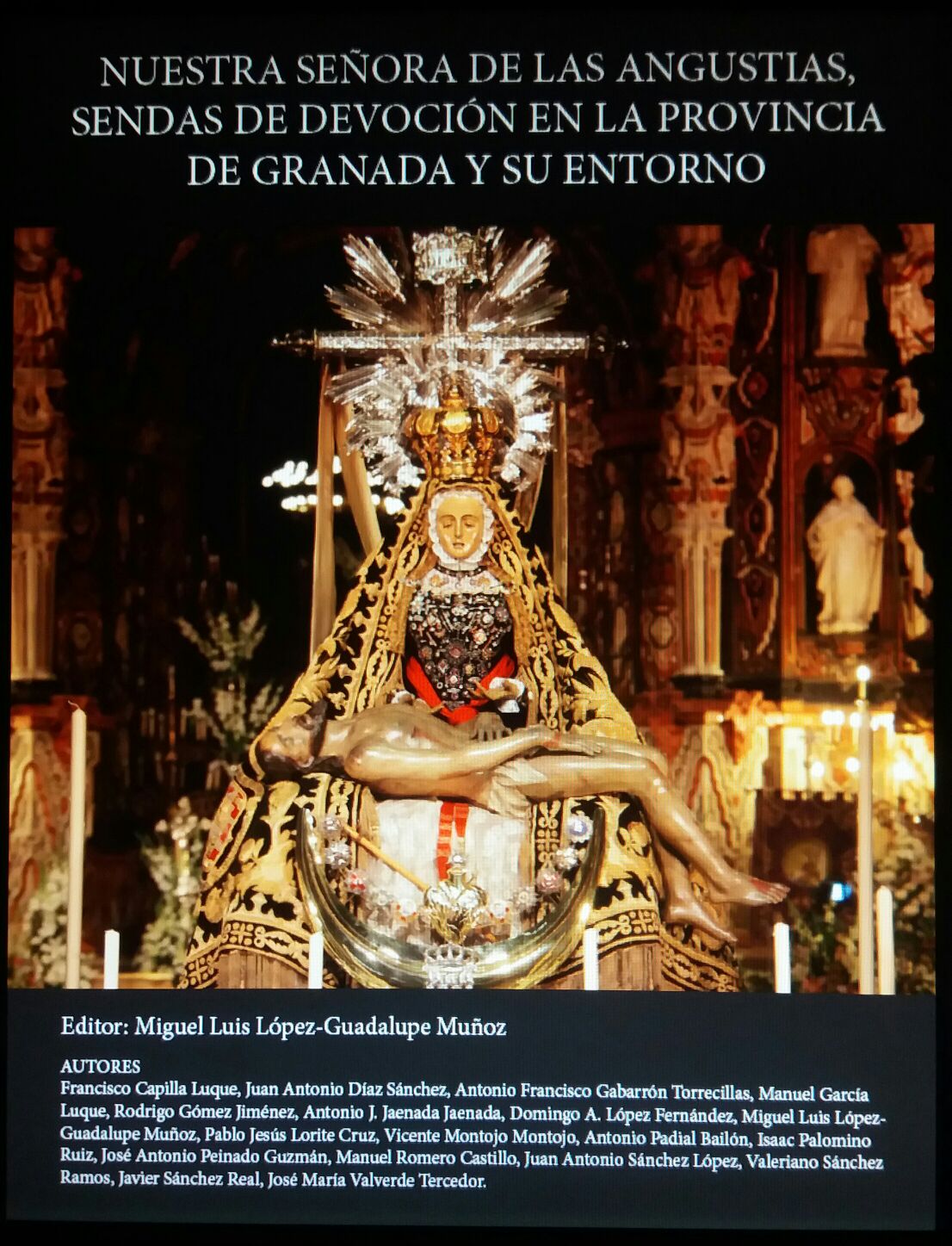 Publicado un libro sobre la Virgen de las Angustias que contempla su devoción en el Altiplano granadino. Bajo el título “Nuestra Señora de las Angustias, sendas de devoción en la provincia de Granada y su entorno”, la Muy Antigua, Pontifica, Real e Ilustre Hermandad Sacramental de Nuestra Señora de las Angustias, Patrona de Granada y su Archidiócesis (Hermandad de las Angustias) ha publicado un libro, que ha sido coordinado por Miguel Luis López-Guadalupe Muñoz, catedrático de Historia Moderna de la Universidad de Granada y, a la sazón, Hermano Mayor de dicha hermandad.