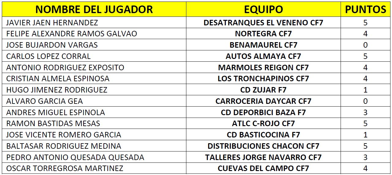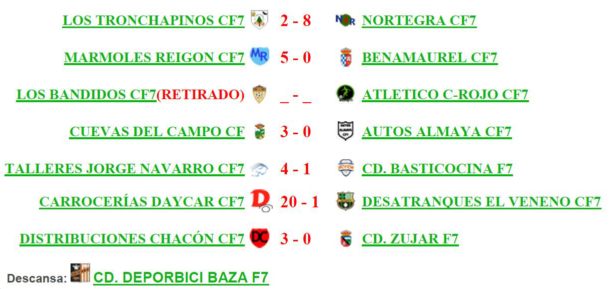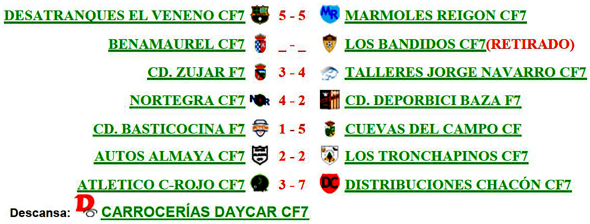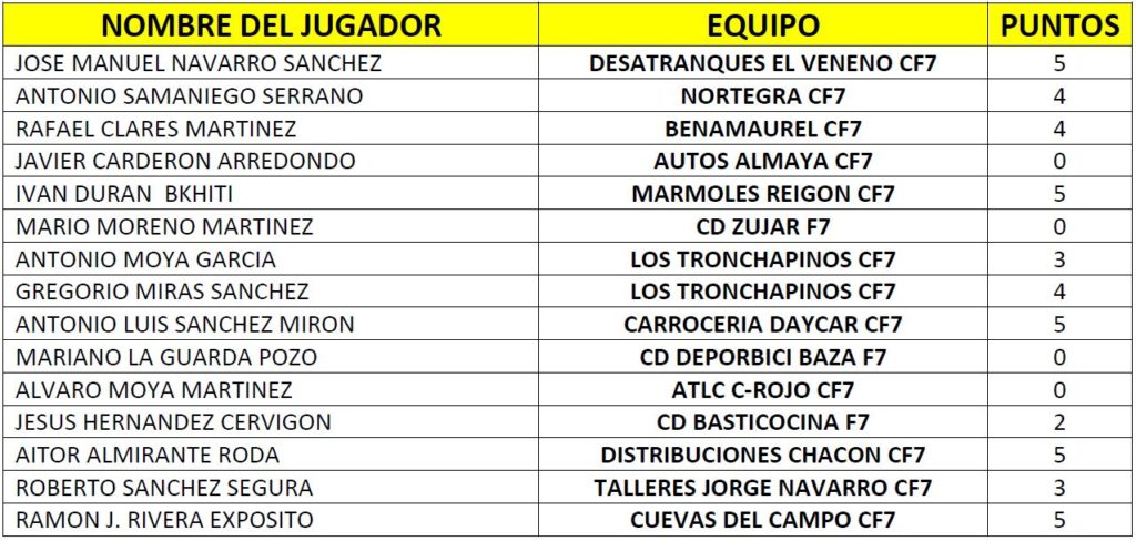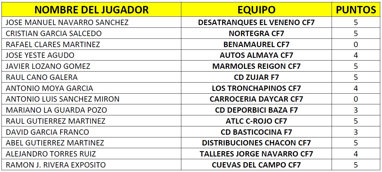 - Primera amonestación y multa de 1€ a Juan Antonio Valdivieso Yeste (CD Basticocina F7) y Javier Navarro Martínez (CD Zújar F7)