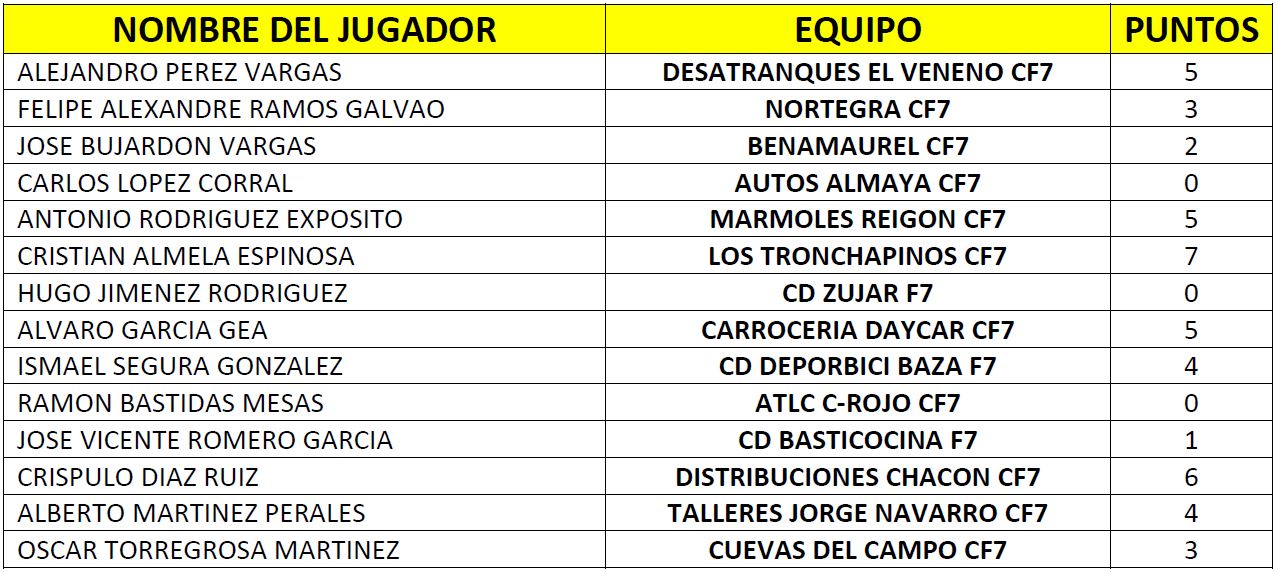 - Cuarta amonestación y multa de 4€ a Ismael Gómez Bastidas (CD Basticocina F7)
