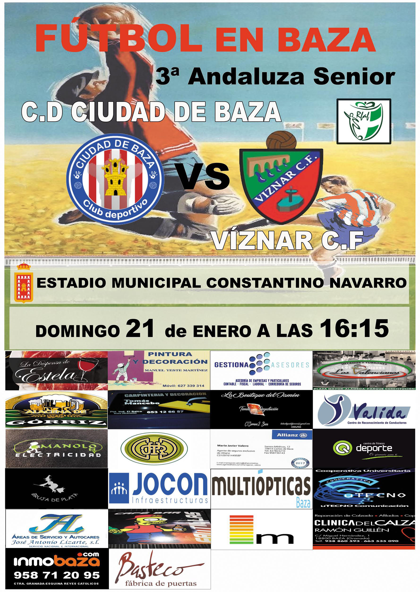 Después de la goleada en Deifontes, el C.D. Ciudad de Baza recibe al Víznar en el primer partido del año en casa. Tras la abultada goleada conseguida contra el Deifontes (0-7), el C.D. Ciudad de Baza recibe a un Víznar que acaricia los puestos de promoción de ascenso.