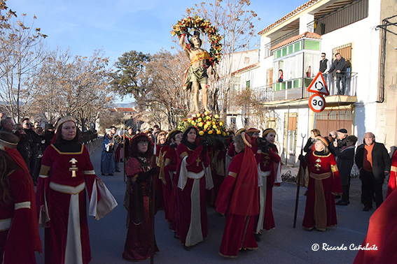 16,30 h.: Bajada a por San Sebastián con los Soldados, Danzantes, Cascaborra, Banda de Tambores y Cornetas y las Tropas Cristianas
