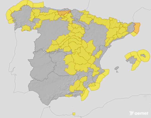 Por último, este aviso destacaba que con la entrada de la masa de origen ártico se producirá un significativo descenso de las temperaturas, tanto en las máximas como en las mínimas. De esta forma se espera que las heladas se generalicen en gran parte del interior peninsular durante el lunes 5 y martes 6, siendo moderadas en amplias zonas de las mesetas y localmente fuertes en torno a los principales sistemas montañosos, especialmente del área pirenaica.