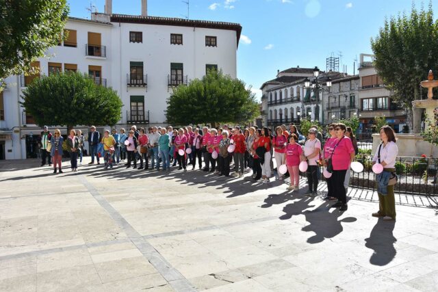 Ayer tenía lugar en Baza el acto con motivo del Día Mundial del cáncer de mama en el que varias docenas de ciudadanos reafirmaron su compromiso contra esta enfermedad. Algo más de medio centenar de personas se congregaban ayer en la Plaza Mayor bastetanos, acompañando a los representantes institucionales entre los que se encontraban el alcalde de la ciudad, Pedro J. Ramos, junto a miembros de su Equipo de Gobierno y del Grupo Municipal Socialista; integrantes de la Junta Local de la AECC, con su presidente Francisco Manzanera a la cabeza; el diputado provincial, Roberto González, así como los máximos representantes de la Policía Local y Cuerpo de Bomberos.