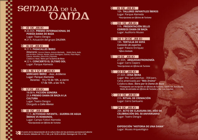Ahora se da un paso más y se programa en él una de las actividades destacadas de esta Semana de la Dama de Baza con la que se clausura el 50 Aniversario de su Descubrimiento: una tertulia de sofá con los integrantes de la Comisión de Expertos de este aniversario. También el jueves, pero a partir de las 21.30h, se desarrollará en el Cerro Cepero una sesión de Arqueoastronomía para la que todavía se pueden formalizar inscripciones en la Oficina de Turismo.
