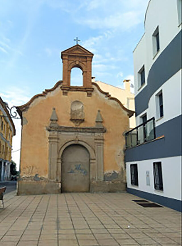 Llama la atención el esquematismo de la fachada casi cuadrada, adquiriendo ciertos toques clásicos gracias a su portada en arco de medio punto flaqueada por pilastras toscanas cajeadas sobre las que se apoya un entablamento con friso ornamentado con placas rectangulares y cuadradas resaltadas. Sobre éste, pirámides con diminutas bolas en los extremos y pequeña hornacina en la parte central. Se rematada la fachada por una pequeña cornisa mixtilínea de perfil curvado realizada por una doble fila de ladrillos entre tramos con declinaciones curvas y rectas, rompiéndose en su parte central para alojar una bonita espadaña de ladrillo con arco de medio punto coronado por un frontón. En 1884 se cerró el cementerio y se levantó un nuevo, más alejado de la ciudad, con capilla anexa.