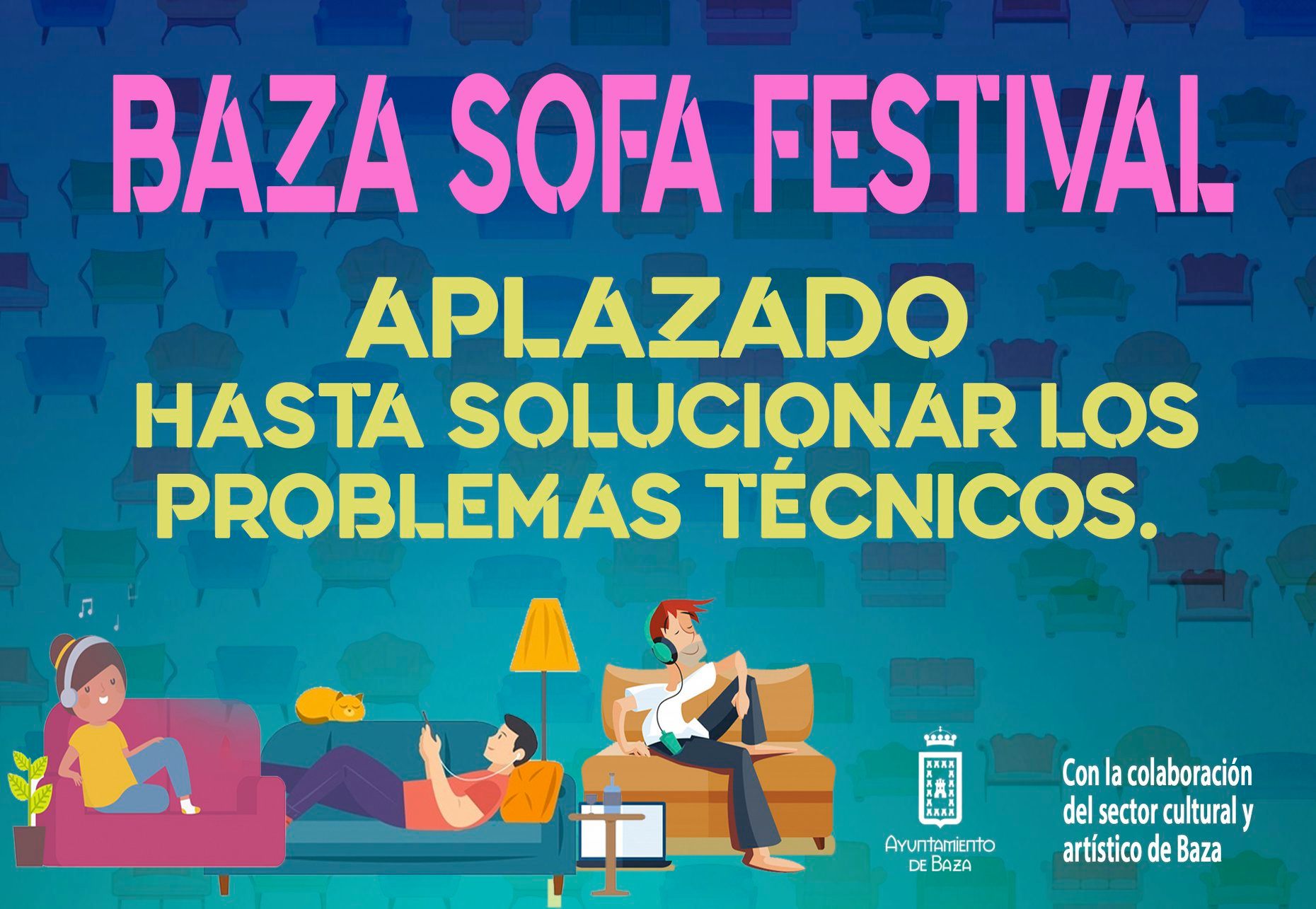 Aplazado hasta nueva fecha el Baza Sofá Festival, por problemas técnicos. Problemas técnicos que obligaron a retrasar el momento del inicio y que no se pudieron superar para que la transmisión prevista funcionara en las mejores condiciones. Algo que obligó a la organización a emitir una nota en la que “Lamentamos anunciar que se aplaza el festival de música para otra nueva fecha. Queremos que escuchéis perfectamente a nuestros artistas y grupos locales y para ello vamos a trabajar en que se pueda disfrutar perfectamente de las actuaciones. Anunciaremos la nueva fecha lo antes posibles. Muchas gracias y disculpad las molestias”.