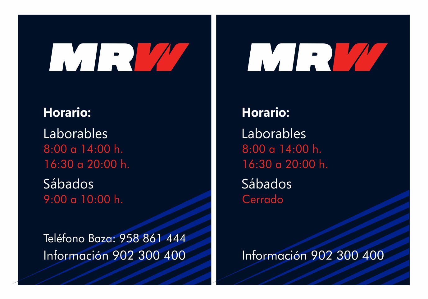 MRW Baza quiere comunicar a todas las empresas, clientes y habitantes en general de nuestras comarcas, que durante este periodo de alerta sigue manteniendo sus instalaciones abiertas en horario habitual de lunes a viernes, de 08:00 a 14:00 h., en horario de mañana, y de 16:30 a 20:00h., en horario de tarde, y los sábados de 9:00 a 10:00h. de la mañana.
