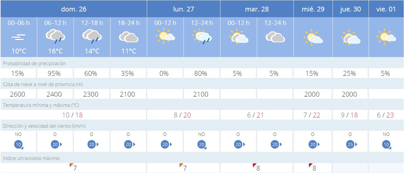 Será pues, a partir de las seis de la tarde, cuando el cielo se mantenga nuboso, pero es más probable que la lluvia no se haga presente, en base a ese 35% de probabilidades que sí que parece que dará ocasión a la tan ansiada salida.