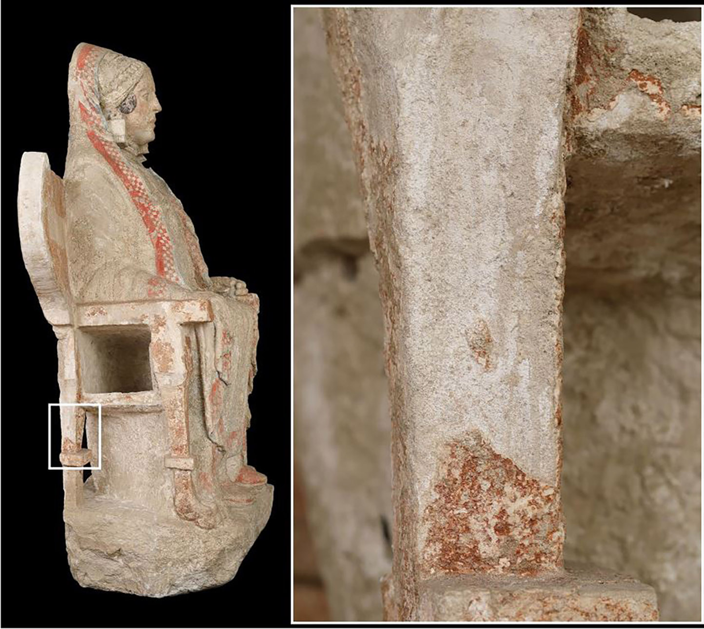 Se trata de un unicum al ser una pieza completa y policromada, hallada en contexto arqueológico, en su tumba subterránea y con su ajuar original.
