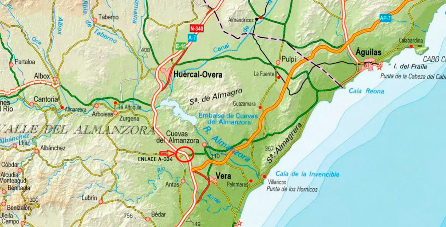 El motivo no es otro que las obras que se están ejecutando en la Autovía del Almanzora (A-334) por la Junta de Andalucía, en el entorno del que será el futuro enlace, a la altura de Cuevas del Almanzora, en la provincia de Almería.