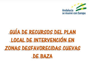 Disponible para su descarga por los interesados la Guía de recursos de la localidad de Baza editada desde el Plan Local de Intervención en la Zona Desfavorecida de Las Cuevas. Desde el Plan Local de Intervención en la Zona Desfavorecida de las Cuevas de Baza, programa financiado por el Fondo Social europeo y la Consejería de Políticas Sociales de la Junta de Andalucía, se ha elaborado una guía de recursos de la localidad de Baza.