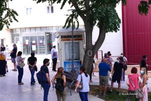 Y sí. Allí estaba un paciente grupo de docentes, intentando guardar la distancia oportuna, en espera de ir siendo llamados para someterse a los test del Covid-19, justo a escasas horas del inicio de un nuevo curso que hoy se pone en marcha.