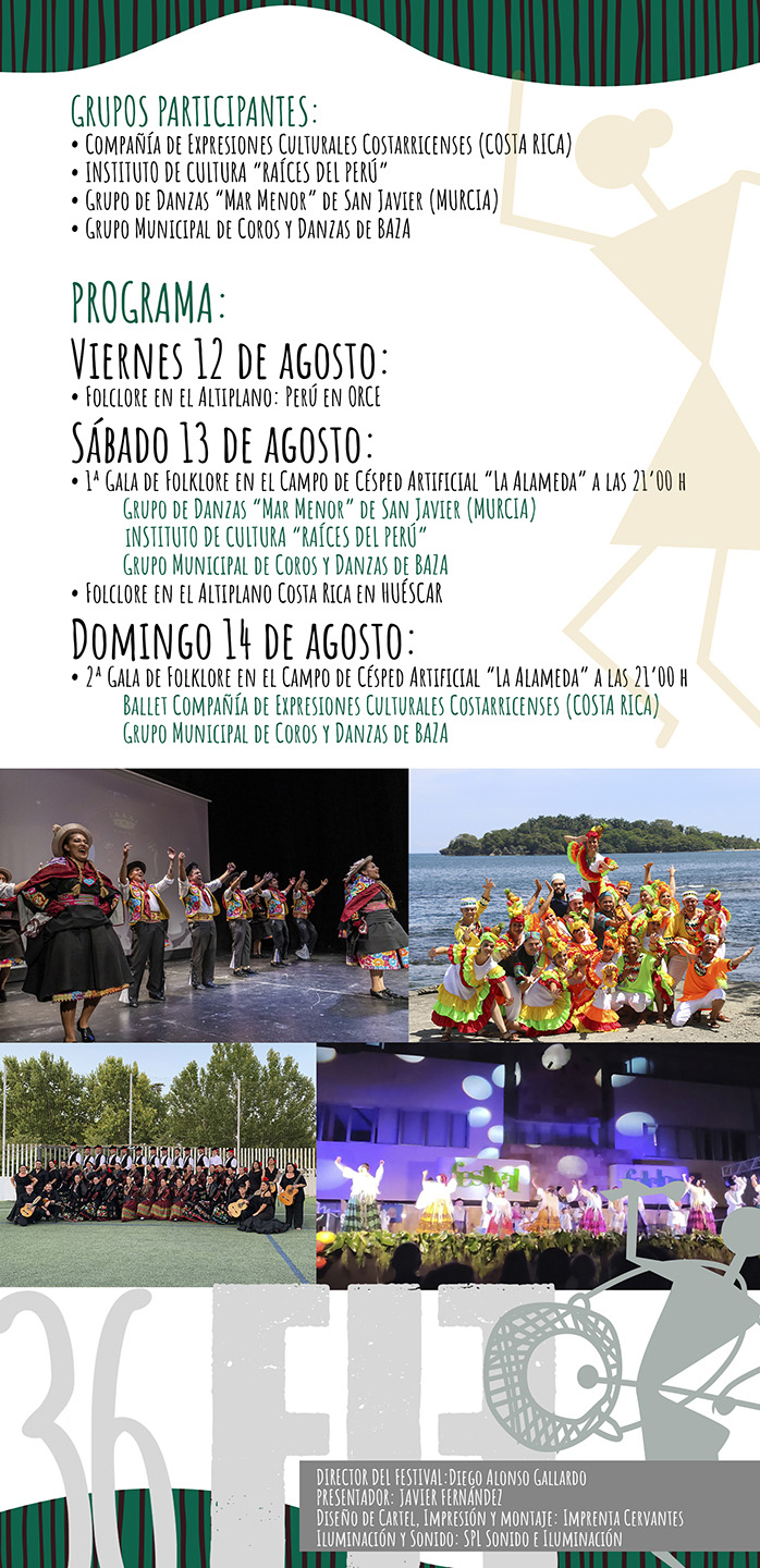 Paralelamente se celebrará el programa Folclore en el Altiplano, que se iniciará el viernes 12 de agosto, con la actuación, en Orce, de grupo de Perú, mientras que el mismo sábado 14 habrá actuación en Huéscar, hasta donde acudirá el grupo de Costa Rica.