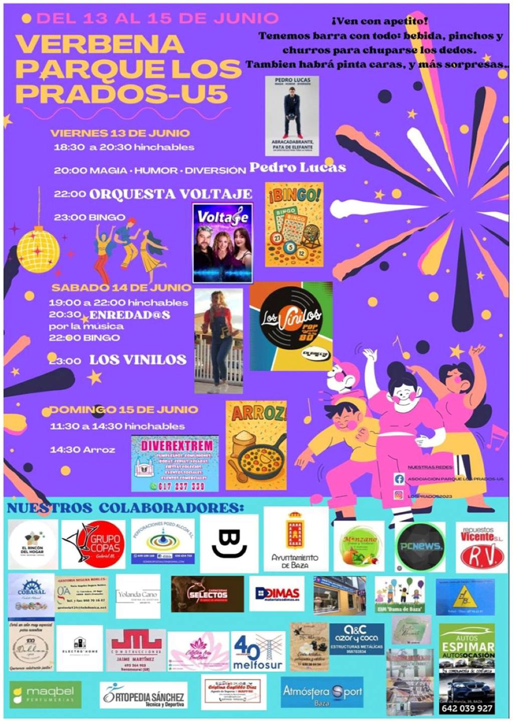 Los vecinos del Parque Los Prados-U5 celebran su tradicional verbena, del 13 al 15 de junio, con actividades para todas las edades. La alegría, la música y la convivencia vecinal volverán a llenar uno de los barrios más nuevos de las últimas expansiones de la ciudad bastetana, el Parque Los Prados-U5, donde este fin de semana se celebrarán la tradicional verbena y otros actos festivos organizados por la Asociación de Vecinos. Un evento que se celebrará los días 13, 14 y 15 de junio y que promete diversión para todas las edades, en uno de los espacios verdes más emblemáticos del barrio.