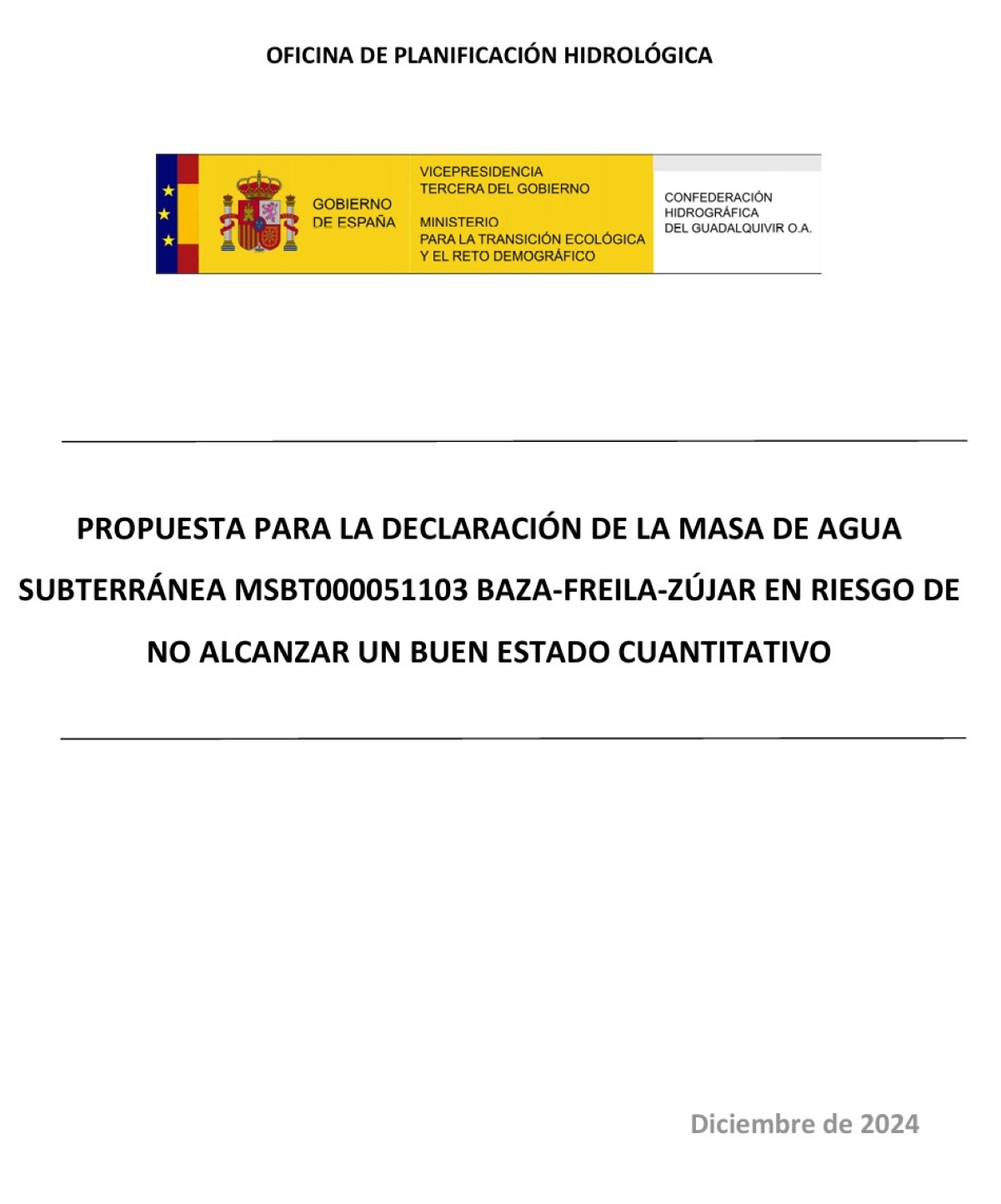 Su declaración se produce tras conocerse la intención de la Confederación Hidrográfica del Guadalquivir (CHG) de iniciar un proceso de consulta pública para declarar en riesgo la masa de agua subterránea Baza-Freila-Zújar. Esta medida podría conllevar restricciones que afectarían tanto a los regantes como al consumo general de la población.