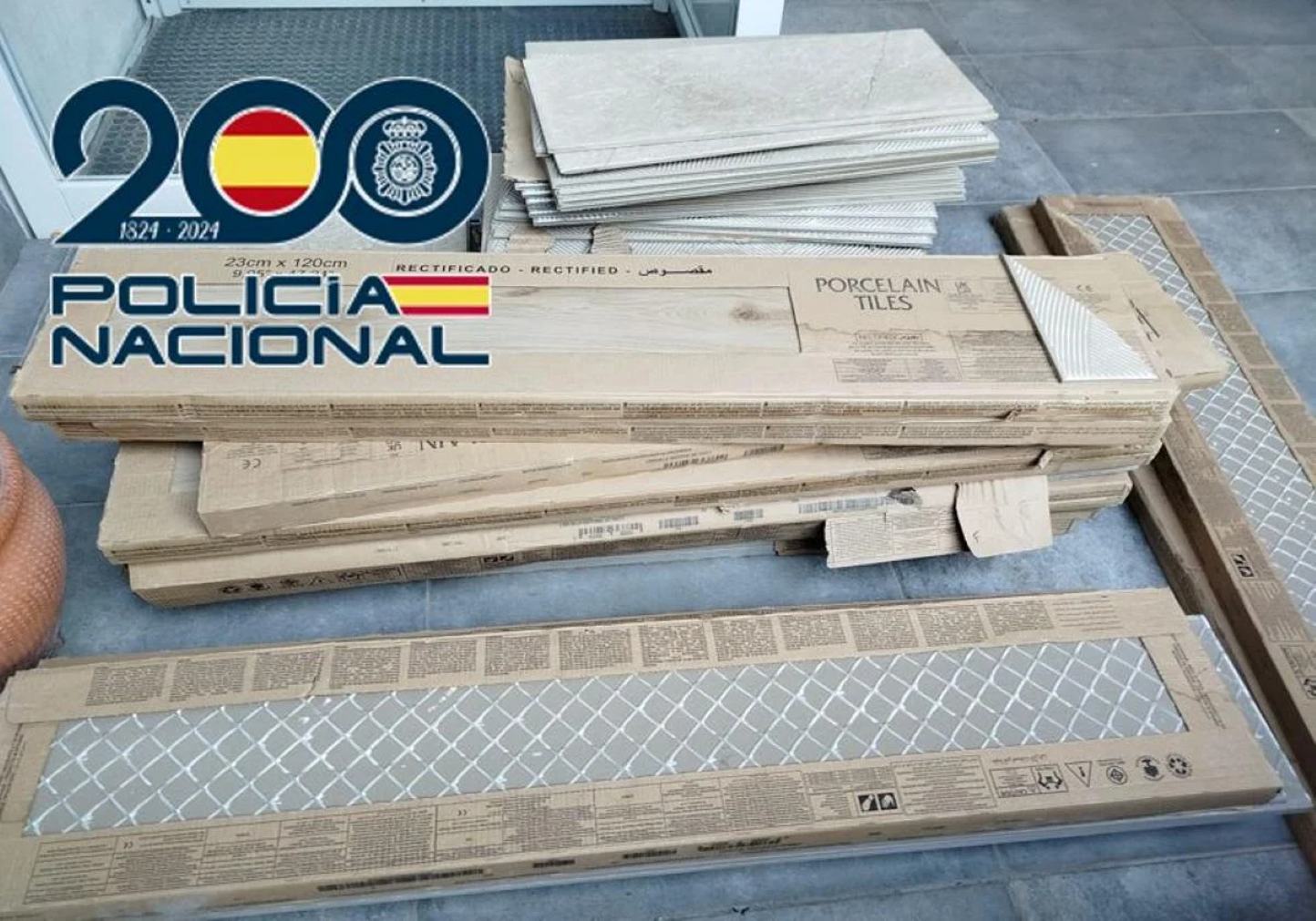 Los sospechosos, uno de ellos con antecedentes policiales, habrían accedido a la obra tras superar una valla de mallazo que protegía el recinto. Una vez en el interior, se apoderaron de unos 60 metros de solería porcelánica, 30 metros de rodapié y 15 sacos de cemento-cola.
