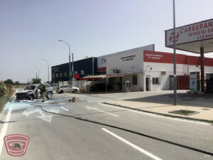 La reacción fue inmediata y hasta el lugar de los hechos se desplazó una dotación de efectivos con un camión dotado de bomba urbana ligera y un vehículo de mando, hasta ubicarse en las inmediaciones del lugar donde se había producido el siniestro: una estación de servicio ubicada en la entrada al Polígono Industrial de El Baíco, junto a la carretera de Benamaurel.