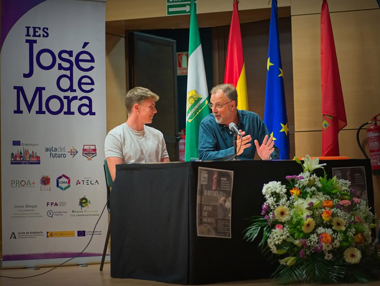 Una visita que bien podría estar acompañada del visionado previo del vídeo «José de Mora, un genio enamorado» cuya edición fue posible gracias al trabajo de un equipo del instituto José de Mora, formado por alumnado del diurno y del nocturno, familias, profesorado, e incluso algún miembro del PAS.