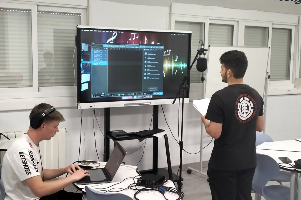 Durante su intervención, Eva Mariño explicó la organización interna de la escuela y repasó algunas de las actividades complementarias previstas para el curso, entre ellas los proyectos del programa Erasmus+. Dos alumnas participantes en una de estas iniciativas compartieron con los asistentes su experiencia formativa en Palermo (Italia).