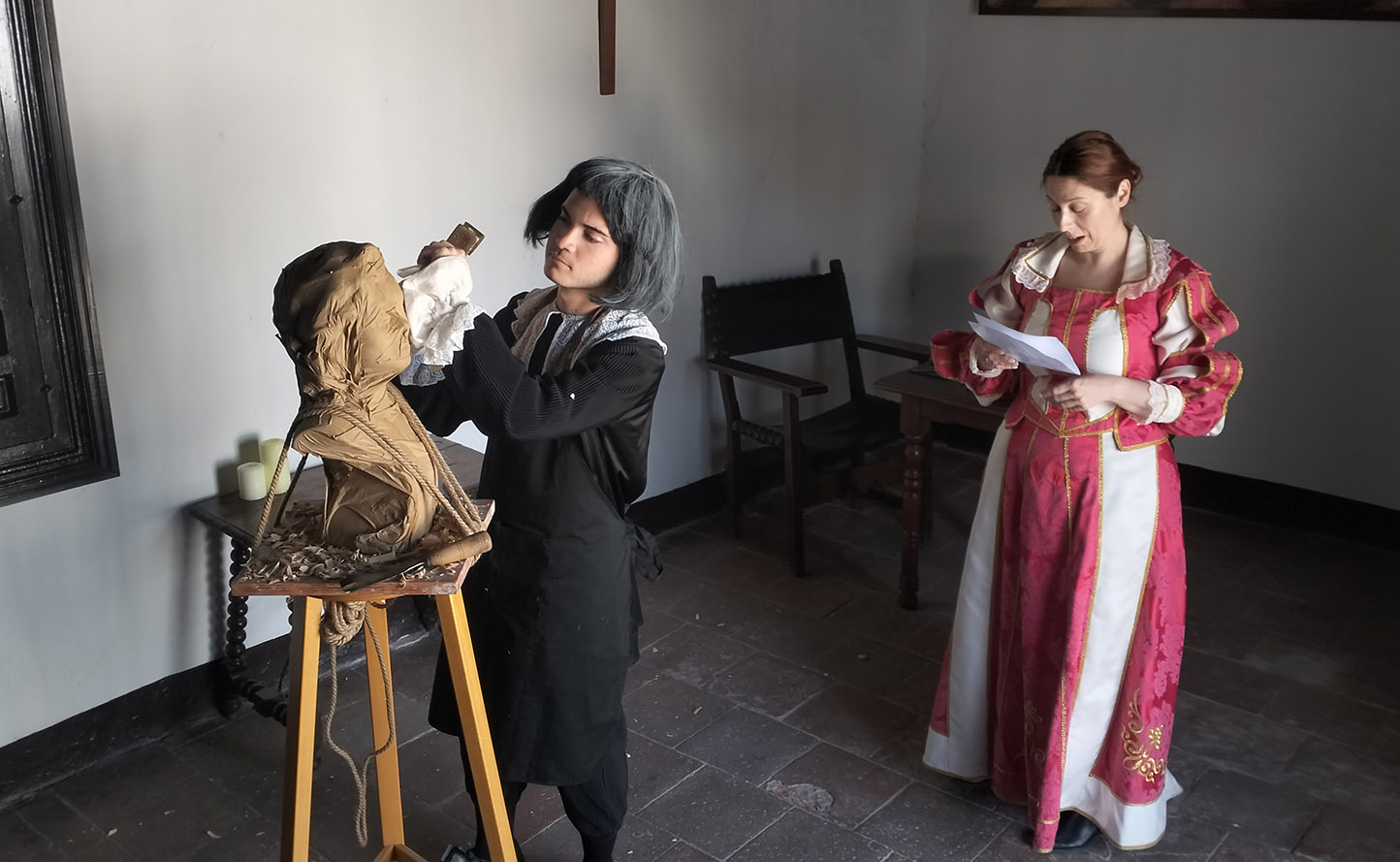 También supuso un gran esfuerzo la búsqueda del vestuario y el atrezo. Esta fase implicaba una labor de documentación, tanto para conocer y elegir el vestuario apropiado a la época, como especialmente, para imaginar cómo sería el trabajo del escultor barroco y poder revivirlo. Para conseguir esta aproximación se contactó con el artesano Esteban Jiménez que les inició en la talla de madera y les facilitó los útiles que después se utilizaron en el corto.