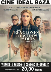 Otro gran estreno de cine español para este fin de semana, en el Cine Ideal de Baza: “Los renglones torcidos de Dios”. Una película que nace de una adaptación de la famosa novela del mismo título, obra de Torcuato Luca de Tena y que está interpretada por Bárbara Lennie, Eduard Fernández, Loreto Mauleón y Javier Beltrán, en sus principales papeles.