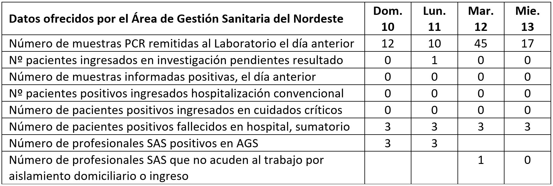 Una situación que se mantiene en los últimos días, con alguna pequeña incidencia, según se puede comprobar en el cuadro que ofrecemos a continuación: