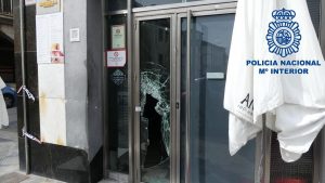 Los policías pudieron comprobar cómo el cristal de la puerta de acceso «había sido fracturado utilizando una piedra, encontrando además numerosos fragmentos de vidrio y restos abundantes de sangre», cuyo rastro fueron siguiendo hasta encontrase al presunto autor, no lejos del lugar, cuando se estaba escondiendo detrás de unos contenedores ubicados en la vía pública, comprobando que esta persona se encontraba visiblemente nerviosa y sangrando abundantemente por una herida abierta en una de sus rodillas. Al ser preguntado por las circunstancias que le habían provocado ese profundo corte sólo pudo aportar un relato de los hechos «manifiestamente incoherente».