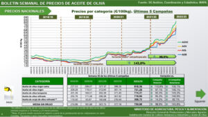 Granada sumará dos campañas seguidas con menos de la mitad de producción de aceite de oliva de lo normal. Un informe elaborado por Cooperativas Agroalimentarias de Granada ha concluido que la pérdida de producción en el sector del aceite superará el 51% en la provincia de Granada para la campaña 2023/2024, respecto a la media de las últimas cinco campañas.