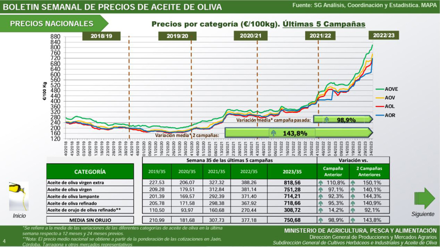 Si se compara con las anteriores campañas, en la 2020-2021 la producción provincial fue de 127.000 toneladas y la de 2021-2022, de 119.000, según datos del Ministerio de Agricultura, lo que supone que van a ser dos campañas consecutivas con menos de la mitad de producción de una campaña normal, algo inédito en el sector, que nunca ha ocurrido así.