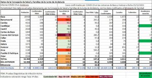 Y terminan los contagios con el caso de Orce, que añadía ayer 4 casos nuevos, con los que totaliza 7 confirmados PDIA y que provocan que se dispare su tasa de incidencia a 14 días hasta los 590,7 casos por 100.000 habitantes, tanto a 7 como a 14 días, aumentando a 8 las personas pendientes de curación.